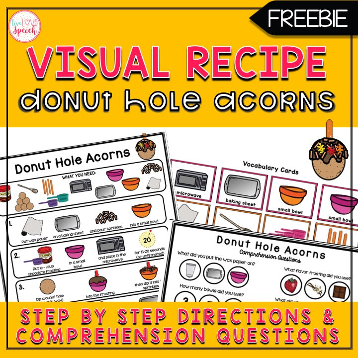 Donut Hole "Acorns" Visual Recipe | FREEBIE | Speech Therapy