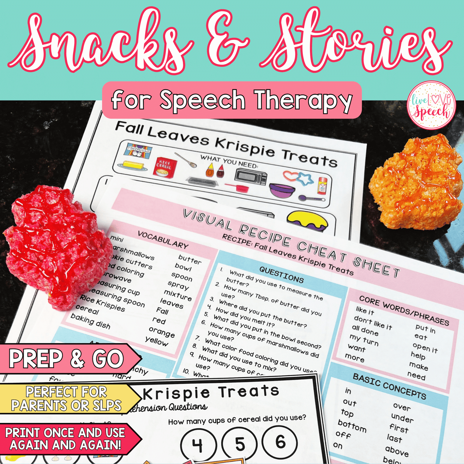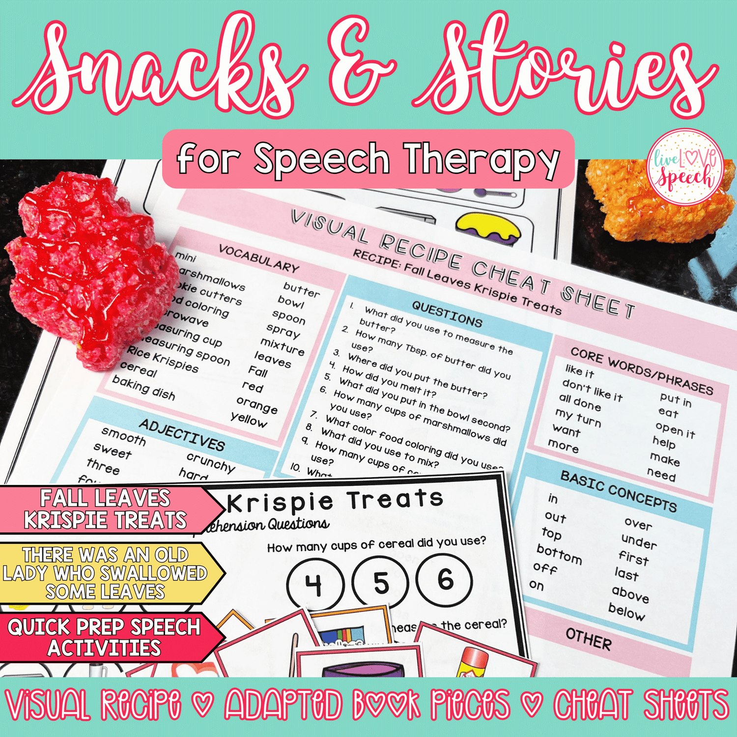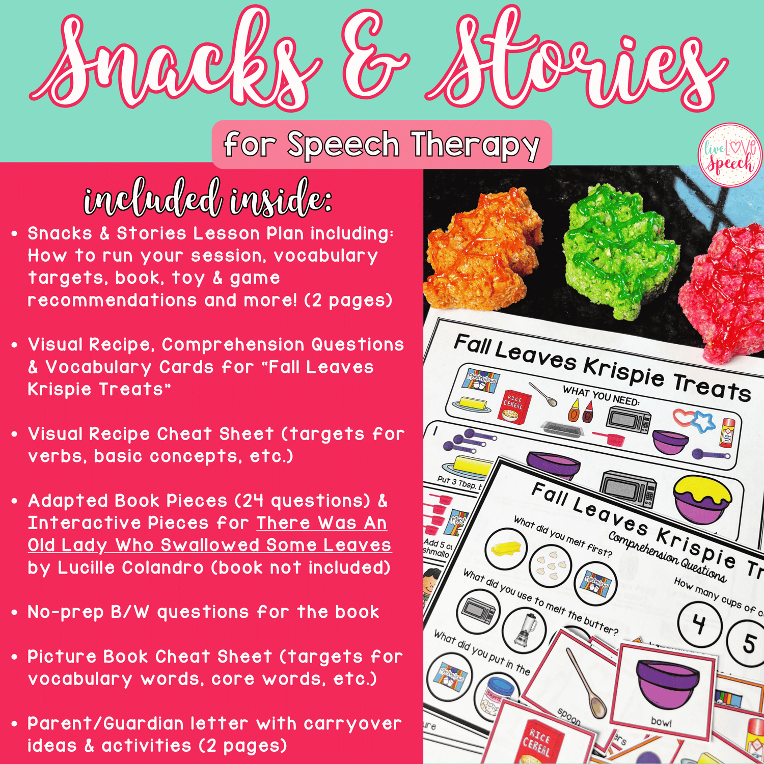 Fall Snacks and Stories for Speech Therapy | Cheat Sheets, ABP, Visual Recipe