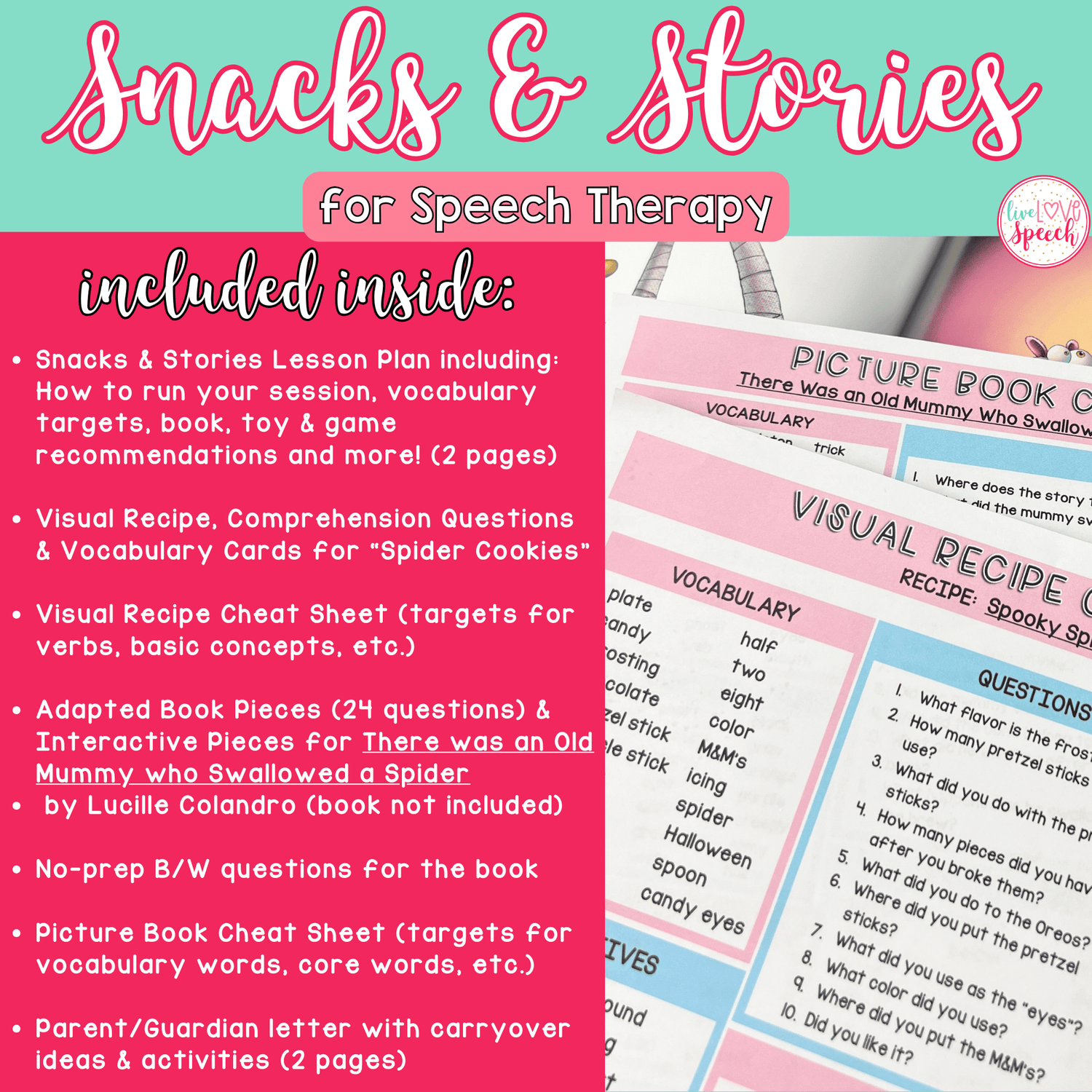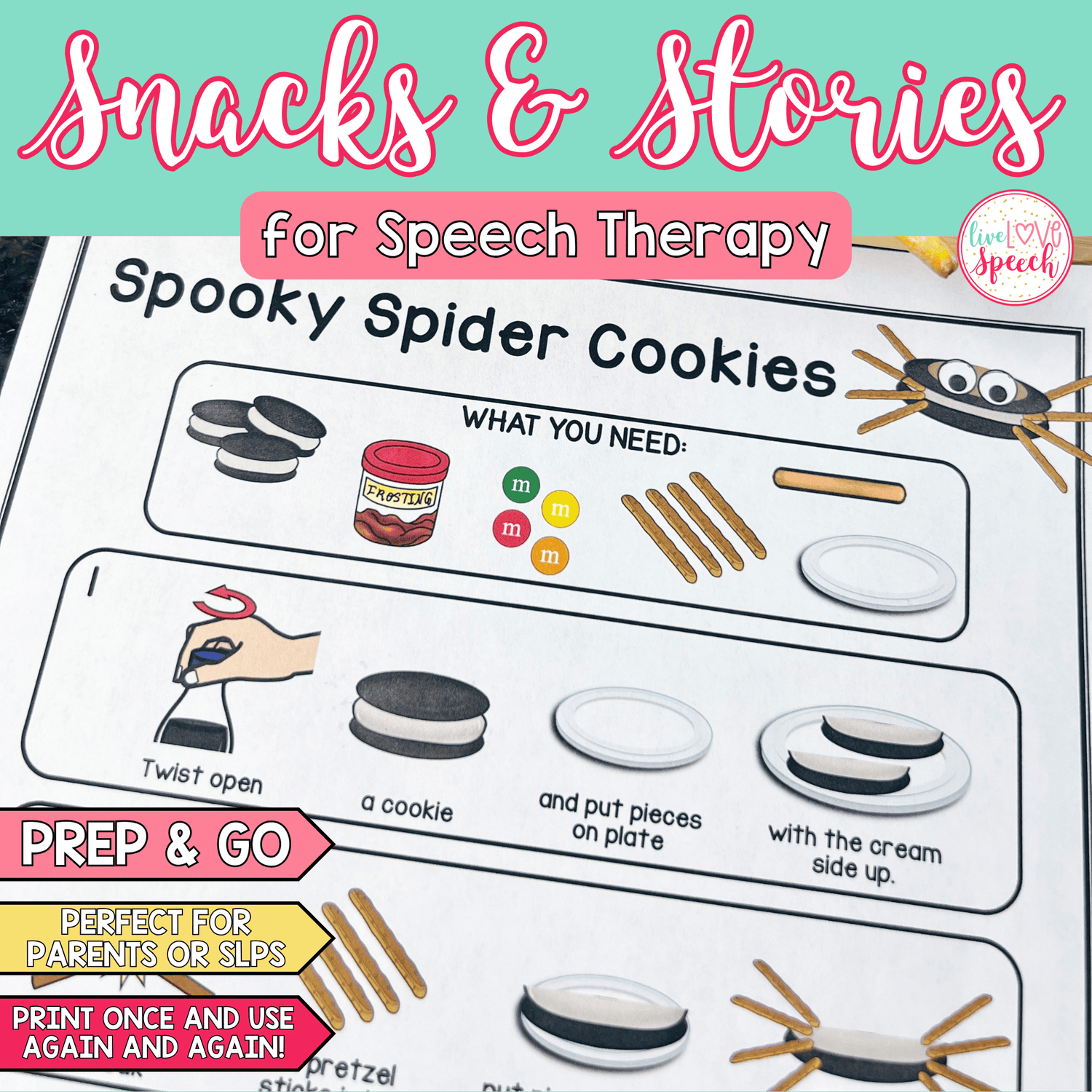 Halloween Snacks and Stories SPIDERS | Speech Therapy Print and Go Resource