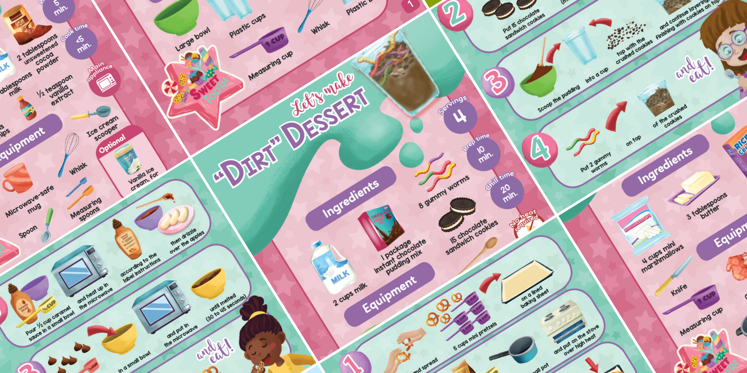 Visual Recipe cards were created and designed by Kristine Deworocki. She is a speech-language pathologist, wife and mom who is passionate about using cooking as a way to support communication skills. She hopes to inspire both kids and adults to have fun and create memories while cooking!