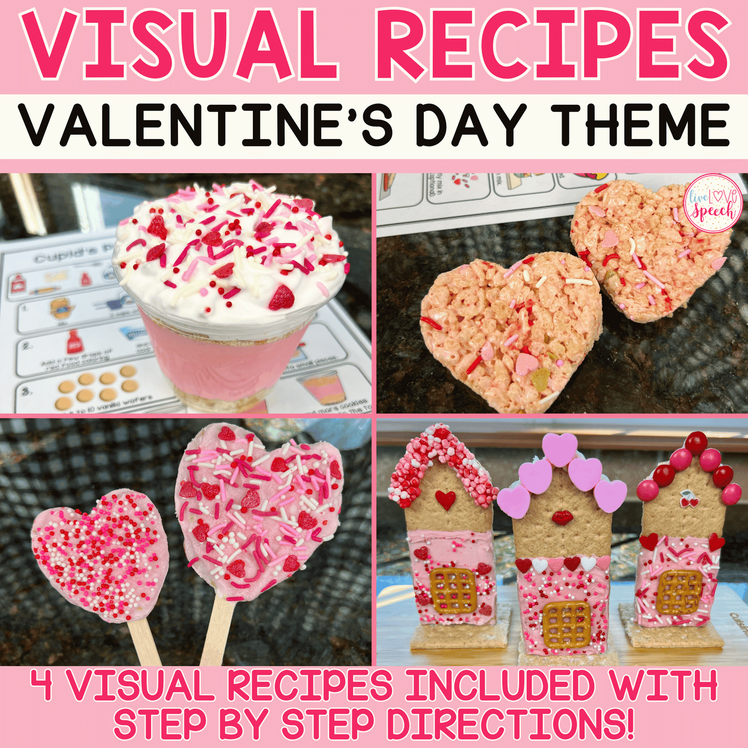 Then you need my Valentine's Day Themed Visual Recipes! This resource is perfect for the Winter season and includes four easy to make and totally delicious no-cook snacks!