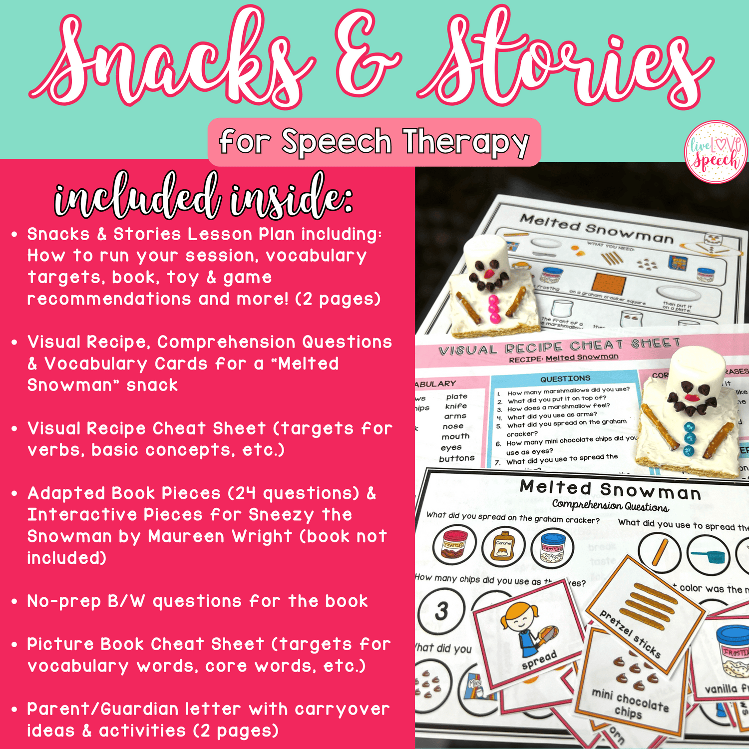 Winter Snacks and Stories for Speech Therapy | Cheat Sheets, ABP, Visual Recipe